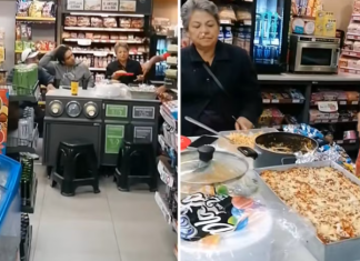Familia celebra Navidad en una tienda de autoservicio de una gasolinera porque a un...