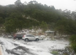 Querétaro.- Una lluvia que cayó esta tarde en la zona serrana de Querétaro, donde se presentaban temperaturas de más de 40 grados, provocó una fuerte granizada.
