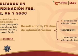 Celaya, Gto., por: Redacción.- Autoridades de Celaya afirmaron que en el primer mes de gobierno los homicidios disminuyeron un 44 por ciento, en comparación con el mismo periodo de la administración anterior.