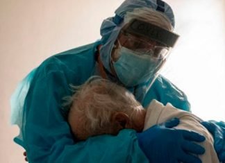 Desgarradora foto de un médico abrazando a abuelito con Covid-19 se hace viral