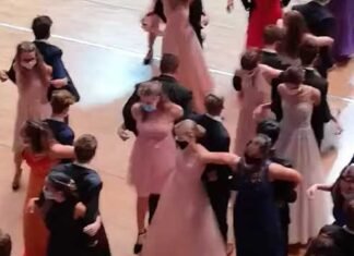 Estados Unidos.- De espaldas, es como decidieron bailar jóvenes graduantes para evitar contagios de coronavirus.