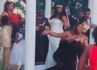 Estados Unidos.- En redes sociales fue difundido un video captado en el momento en que una mujer irrumpe en una boda para reclamarle al novio un embarazo.