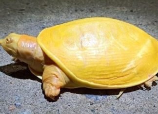 Descubren extraña tortuga amarilla con ojos rosados