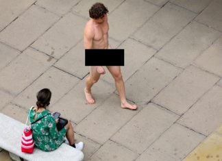 Hombre se pasea por las calles de Londres usando solo un cubrebocas como tanga