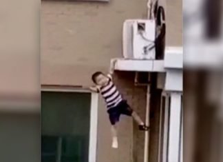 China.- Un video grabado en la provincia de Jiangsu, en el este de China, muestra el espeluznante momento en que un niño de dos años cae desde el quinto piso de un bloque de apartamentos y...