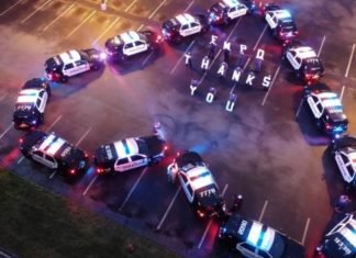 Policías usan patrullas para agradecer a médicos que luchan contra el coronavirus