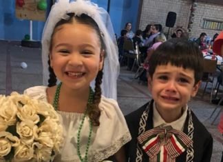 Reynosa.- El rostro feliz de una niña mientras se casa en una kermés escolar, en contraste con el llanto del "novio", se volvió viral en redes sociales.