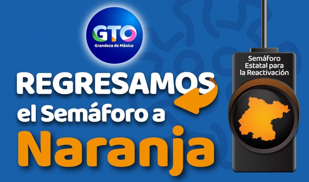 León Guanajuato.- Debido al incremento de contagios y decesos por COVID-19, Guanajuato pasará de amarillo a naranja en el Semáforo Epidemiológico; por ello, la Secretaría de Salud, exhorta a todos los sectores sociales y económicos a cumplir con los protocolos sanitarios y de prevención.