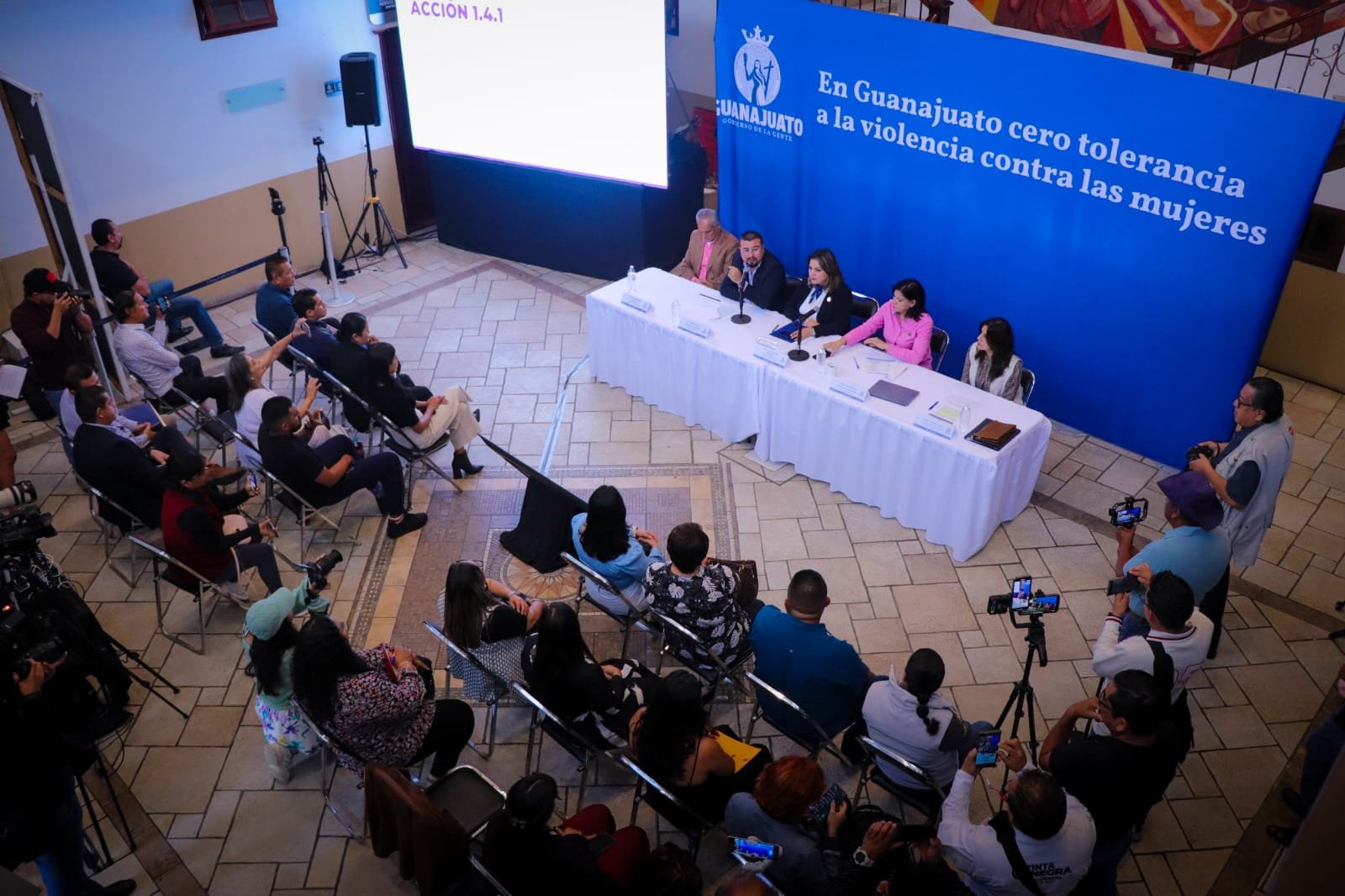 La primera corresponde talleres de prevención de la violencia contra las mujeres y desaparición de personas. El objetivo era que la Secretaría de Educación de Guanajuato impartiera estos talleres en 183 escuelas; esta meta se ha superado ampliamente; al mes de agosto ya se ha intervenido en 251 planteles, con una atención a más de 72 mil estudiantes de secundaria y preparatoria.