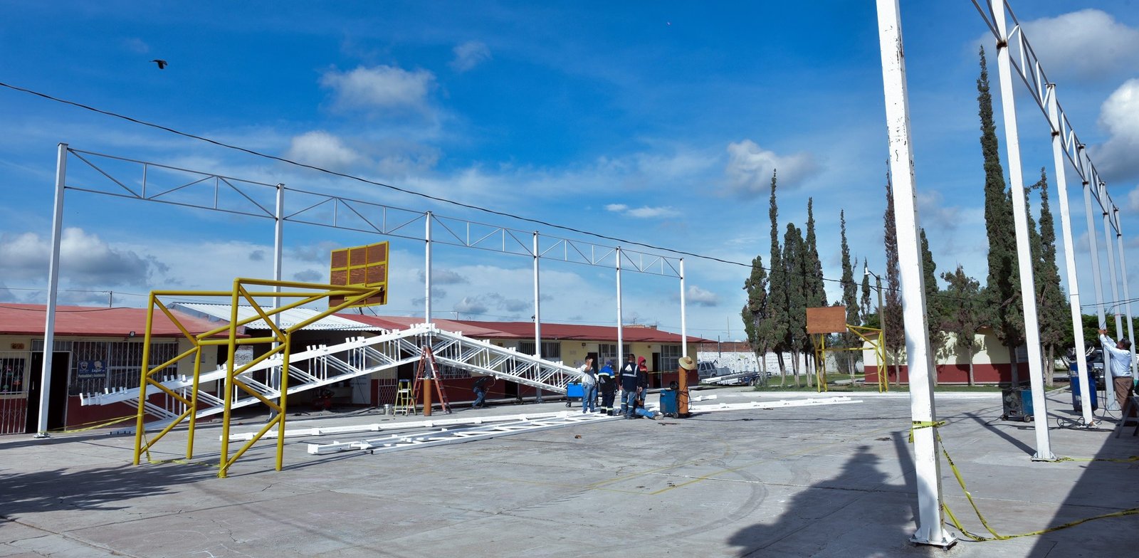 La obra, se realiza dentro del programa “La Escuela es Nuestra”, y con ello se cubre con una de las demandas de los padres de familia, pues los niños quedarán protegidos de los intensos rayos solares del verano y también de la lluvia.