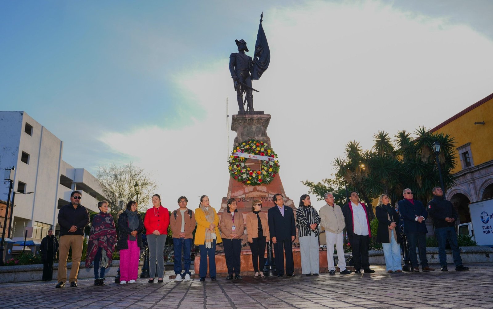 Celaya, Gto.- En el marco del 257 aniversario del Natalicio de Ignacio Allende y Unzaga se realizó un acto cívico en el Jardín San Agustín, encabezado por el presidente municipal, Juan Miguel Ramírez, acompañado por integrantes del Ayuntamiento y directores del gabinete municipal.