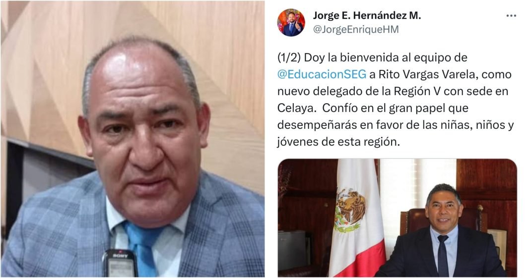 Esta tarde a través de Twitter anunció el relevo: Doy la bienvenida al equipo de la Secretaría de Educación a Rito Vargas Varela, como nuevo delegado de la Región V con sede en Celaya. Confío en el gran papel que desempeñarás en favor de las niñas, niños y jóvenes de esta región».