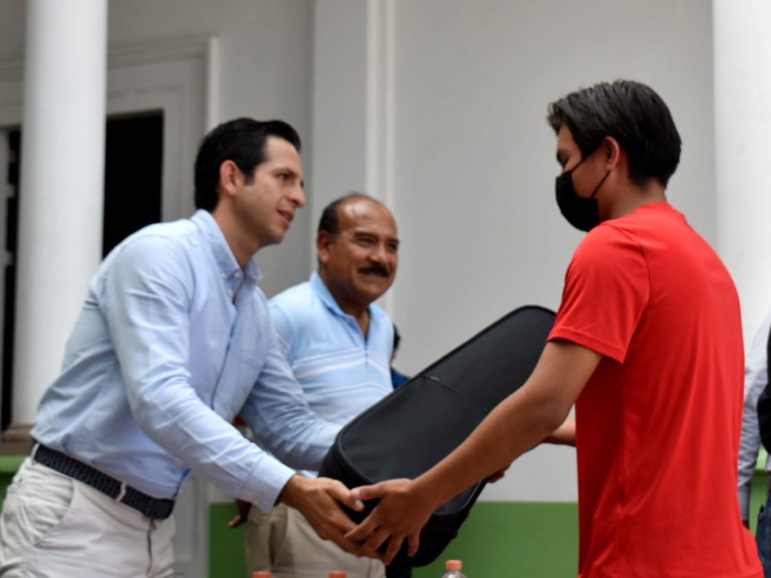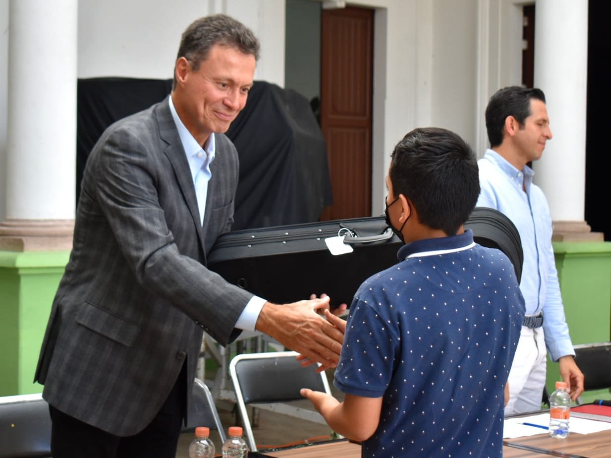 Invitó a los niños y adolescentes beneficiados a comprometerse con este apoyo y a cuidar el instrumento que recibieron a resguardo.