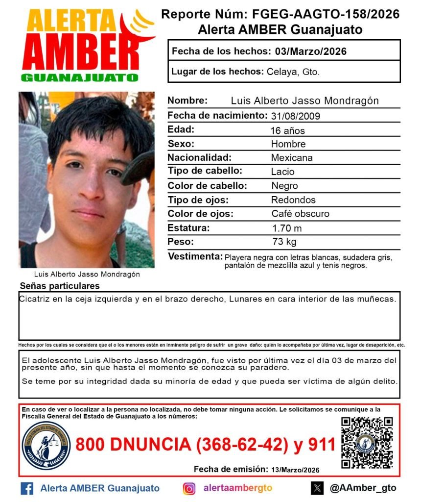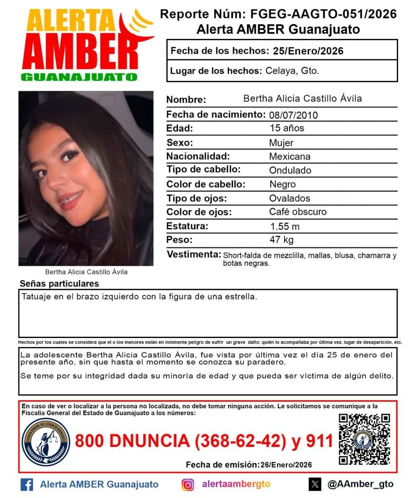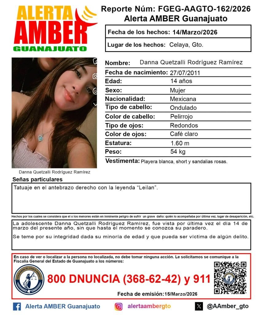 Así lo reflejan las fichas de búsqueda de la Alerta AMBER Guanajuato, publicadas a fin de que la población pueda brindar información para dar con su paradero.