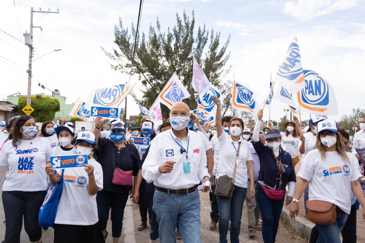 Durante un recorrido por las Colonias Los Naranjos, I, II y III, Cantaranas y Jaral, el aspirante a la Presidencia Municipal por Acción Nacional, Javier Mendoza, Márquez, dio a conocer que encabezará un Gobierno de puertas abiertas y con sentido humano.