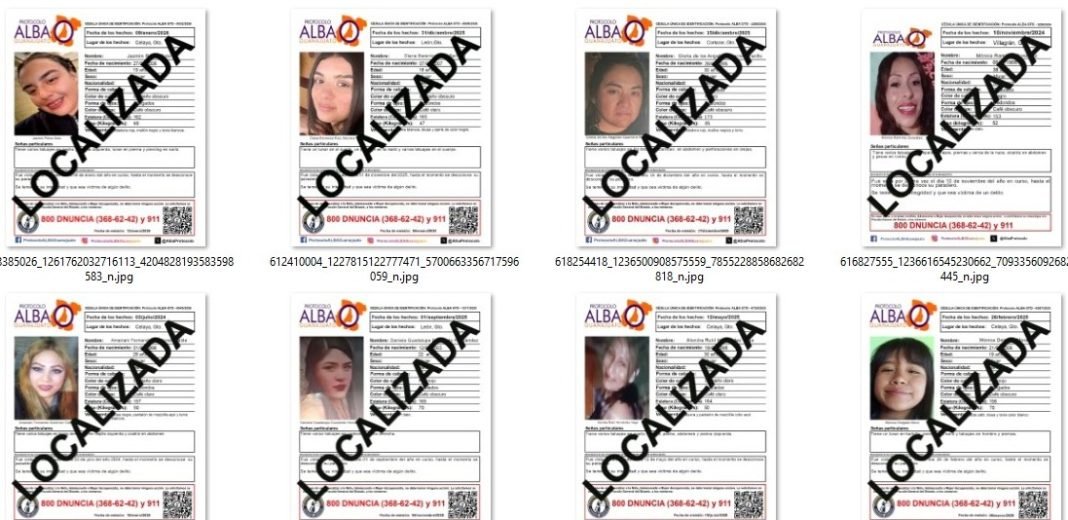 En febrero reportaron la localización de Amairani de 29 años, desaparecida en Celaya el 3 de julio de 2024; de Daniela Guadalupe de 22 años, desaparecida en León el 1 de septiembre de 2025; de Alondra Rubí de 30 años, desaparecida en Celaya el 12 de mayo de 2025; de Mónica de 19 años, desaparecida en Celaya el 26 de febrero de 2025; de Melanie Berenice de 21 años, desaparecida en Celaya el 15 de marzo de 2025; de Alexa Melissa de 21 años, desaparecida en Celaya el 30 de diciembre de 2025; de Sarahí de 25 años, desaparecida en San José Iturbide, el 8 de julio de 2025; de Jazmín de 19 años, desaparecida en Celaya el 9 de enero de 2026; y de Sandra Grisel de 32 años, desaparecida en Villagrán, el 3 de enero de 2026.