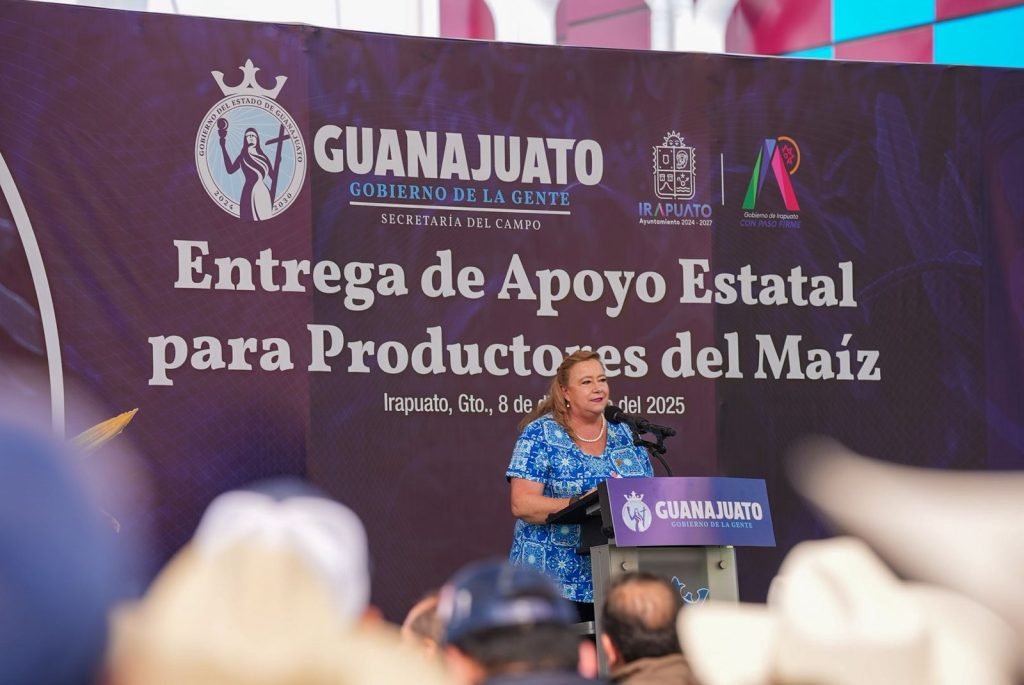 Irapuato, Gto.– La Gobernadora de la Gente, Libia Dennise García Muñoz Ledo, encabezó la entrega estatal de apoyos a las y los productores de maíz de esta entidad.
