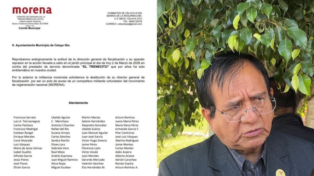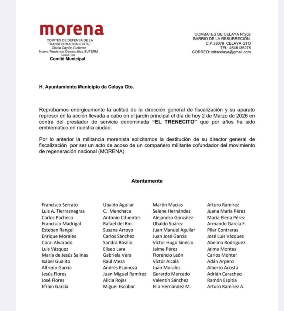 Celaya, Gto., por: Arlett Cárdenas.-Un funcionario del Gobierno de Celaya, identificado como Jimmy Pérez, difundió en redes sociales un comunicado falso en donde supuestamente el comité de Morena exige al Ayuntamiento el cese del director de Fiscalización, Eduardo Griss Kauffman por haber retirado el trenecito del jardín.