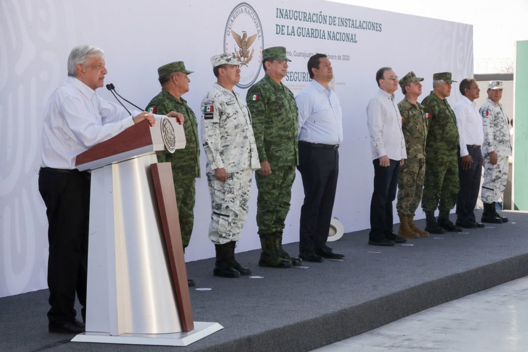 El Presidente Andrés Manuel López Obrador inauguró hoy un cuartel de la Guardia Nacional en el estado de Guanajuato, de 18 que están proyectados. Acompañado del secretario de la Defensa Nacional, Luis Cresencio Sandoval, el titular de la Marina, José Rafael Ojeda, y el gobernador Diego Sinhue, el Mandatario explicó que la construcción de los cuarteles es prioritaria para dignificar el trabajo de los integrantes de la nueva corporación de seguridad.