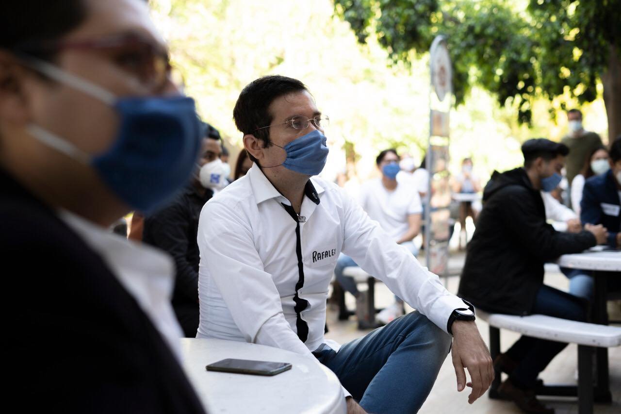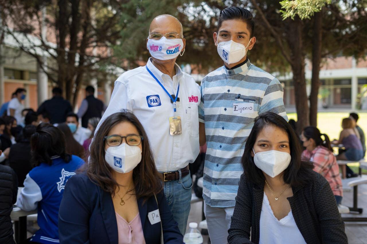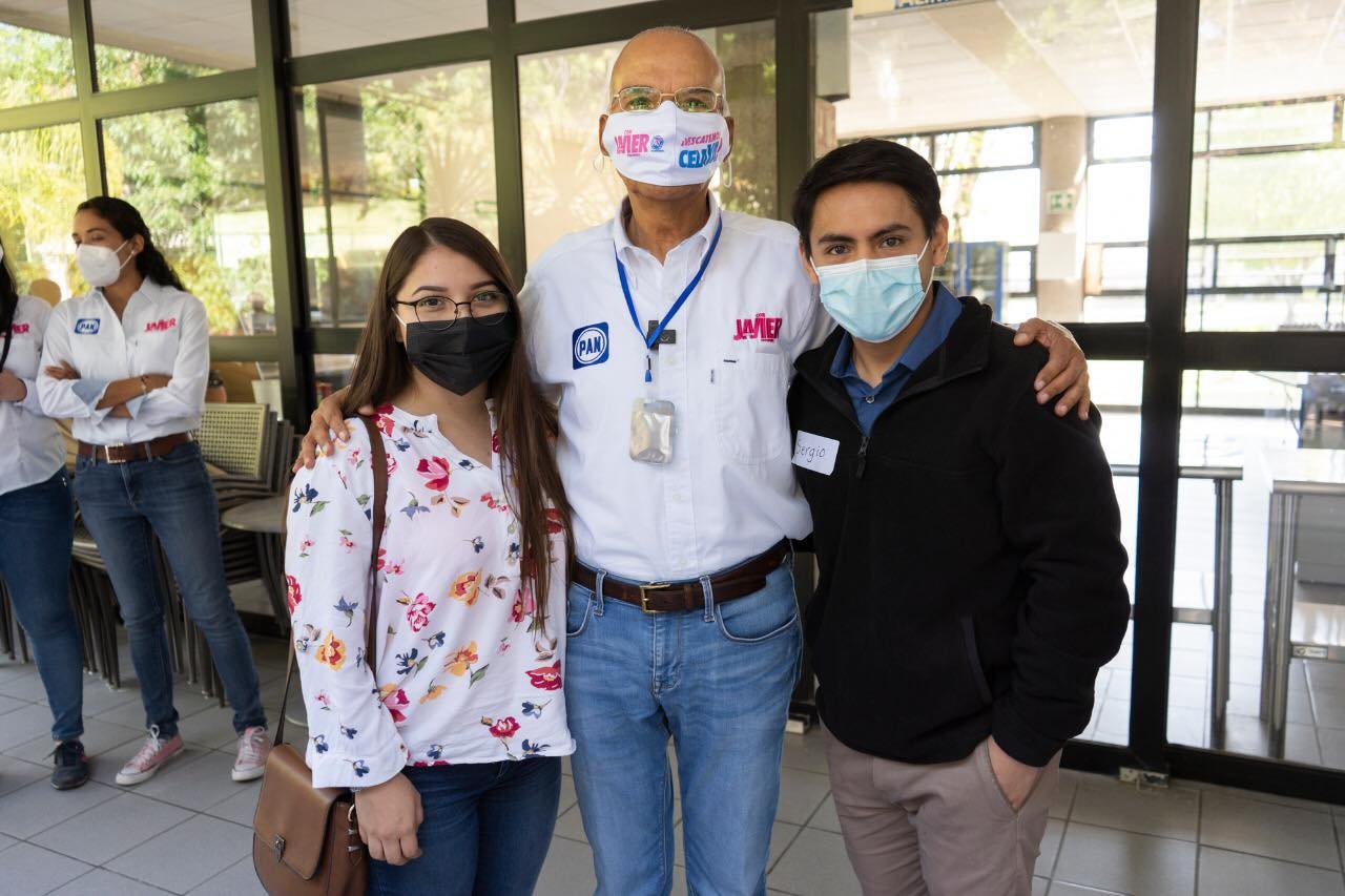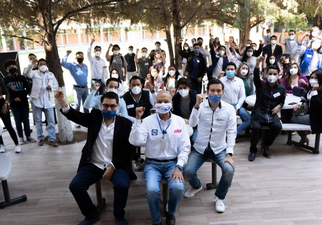 Celaya Gto.- Se llevó a cabo el Foro de Jóvenes de Acción Nacional, en las instalaciones de la Universidad Latina, al que asistió el abanderado a la Presidencia Municipal, Javier Mendoza Marquez. Con la presencia de jóvenes universitarios, la joven Fátima González tuvo a su cargo dar la bienvenida a Mendoza Márquez y a su equipo, y dijo durante su mensaje que es muy importante que los jóvenes participen en el proceso electoral, y luego también: “Los jóvenes damos a la Patria esperanza presente”. Por su parte Javier Mendoza Márquez expresó a los estudiantes que la suya, será una administración de puertas abiertas, incluyente, donde nadie se quede sin participar, un gobierno con amplio sentido humano, en dónde el centro de la las políticas públicas sea la persona. Ofreció ser un Presidente que se ensucie los zapatos, que desgaste las suelas, que viva los problemas con la gente que los está sufriendo, para juntos resolverlos. “Ustedes jóvenes forman parte de una generación a la que le va a tocar vivir en crisis, les va a costar mucho trabajo y van a batallar fuerte… pero quisiera pedirles que no pierdan sus sueños, qué hay que esforzarnos todos los días, comprometernos, y no ser espectadores críticos a convertirnos en protagonistas y ser factores del cambio al cual todos aspiramos”, puntualizó Mendoza Márquez. Llamó a los jóvenes a ser fuente de inspiración en sus casas, en la escuela, en el trabajo, participar en el cambio que requiere Celaya. “Es chamba de todos”, enfatizó. Los jóvenes, luego de escuchar a Mendoza Márquez, se dividieron en distintas mesas de trabajo para trabajar y posteriormente hacerle llegar las conclusiones de las mesas. Javier Mendoza recibió el apoyo de los jóvenes que lo mismo lo felicitaron, buscaron tomarse una foto con él, que le manifestaron su intención de promover el voto a favor de él y el resto de los candidatos panistas.