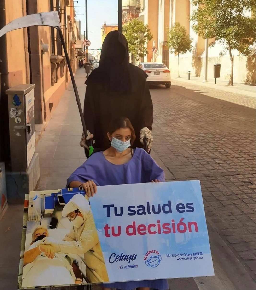 Celaya Gto.- Salen a concientizar sobre el uso del cubrebocas, la prevención y el autocuidado por infecciones crecientes de Covid-19 en Celaya.