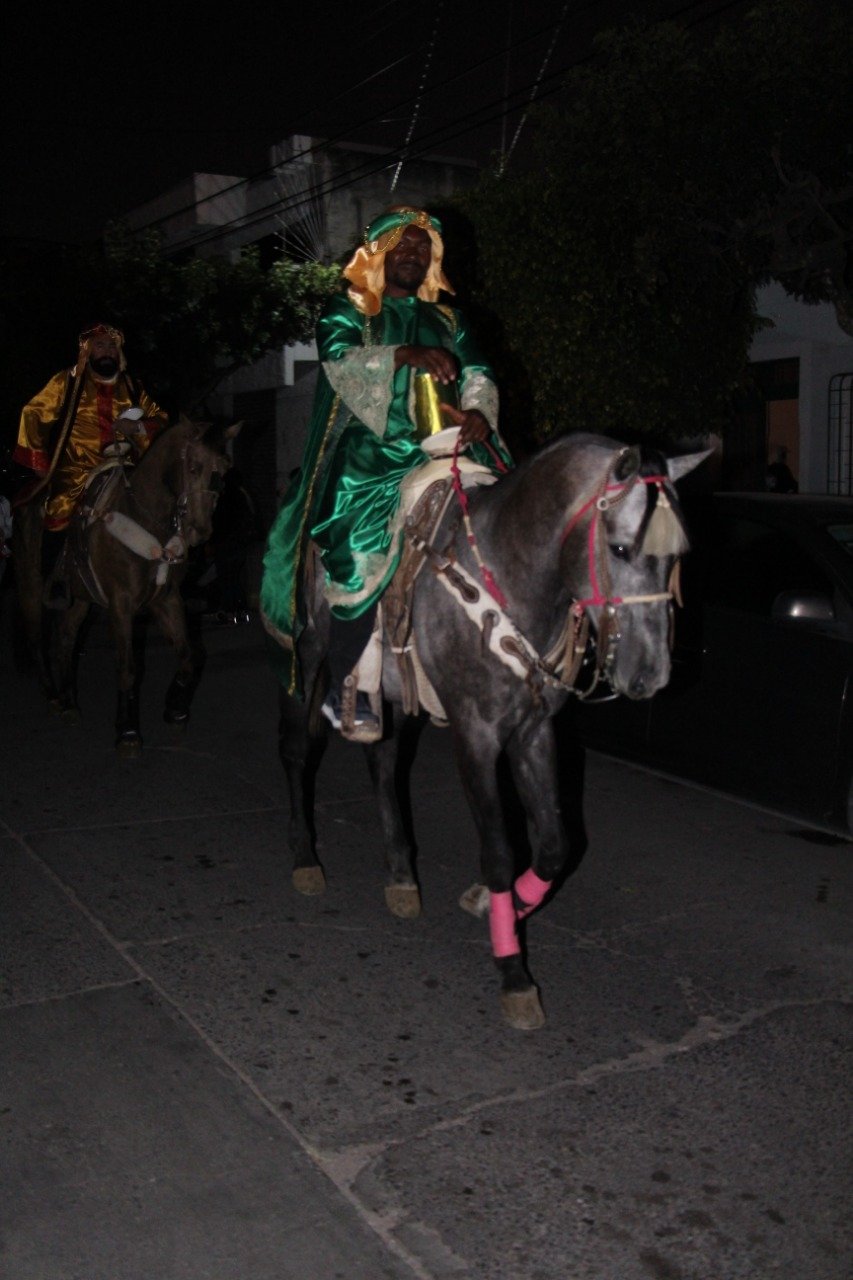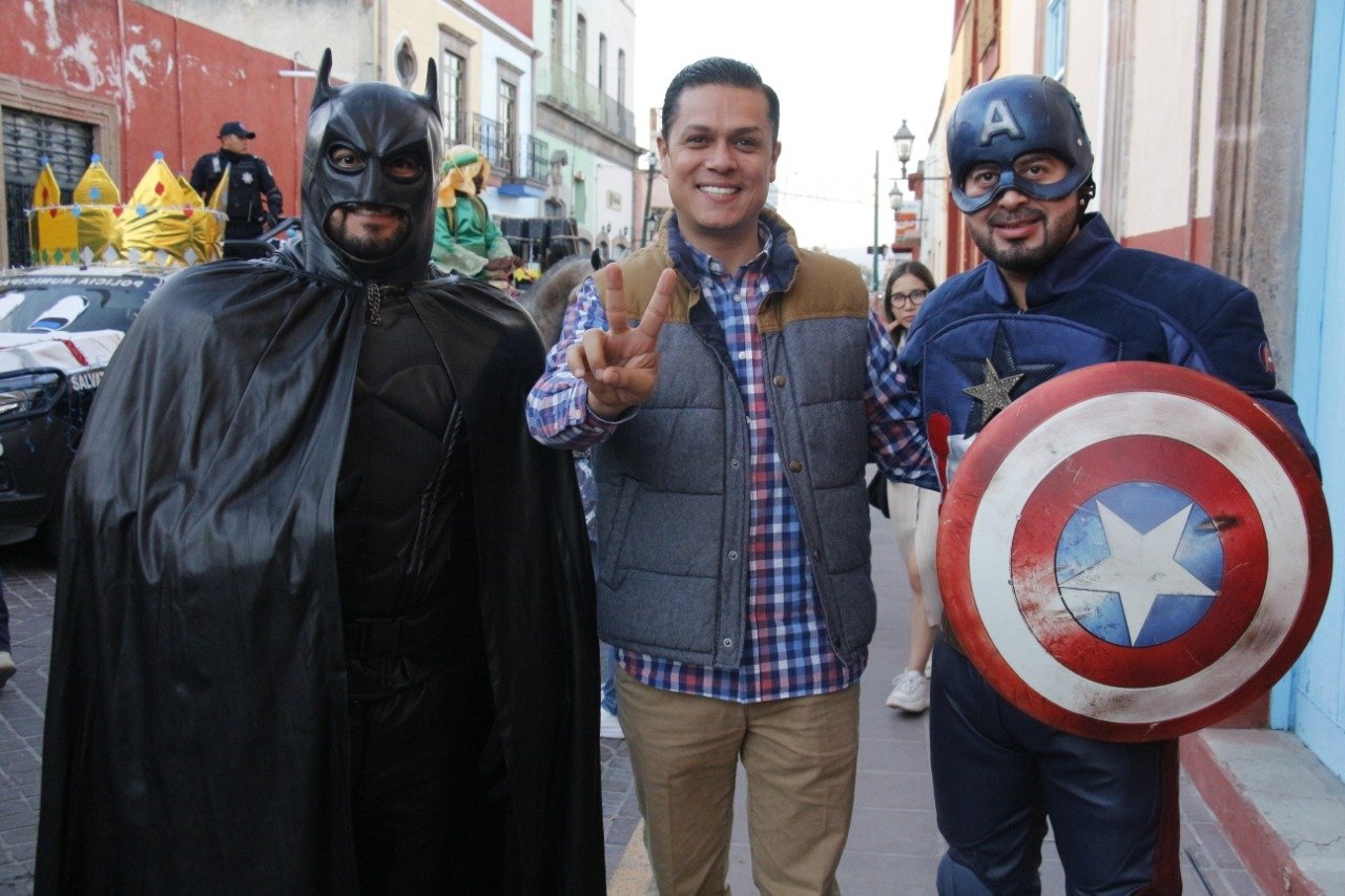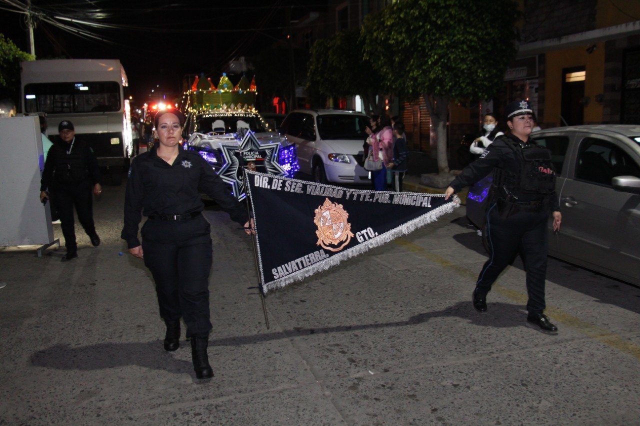 Melchor, Gaspar y Baltazar fueron acompañados en su recorrido por el presidente municipal Germán Cervantes Vega, personal del DIF, la reina de la ciudad Nadesha Primera y sus princesas Luciana y Fernanda, así como por super héroes y princesas de Disney, elementos de la Dirección de Seguridad Pública, personal de Cruz Roja, rescatistas protectores de animales, grupo de bastoneras, un carro alegórico que representaba el nacimiento del Niño Jesús.