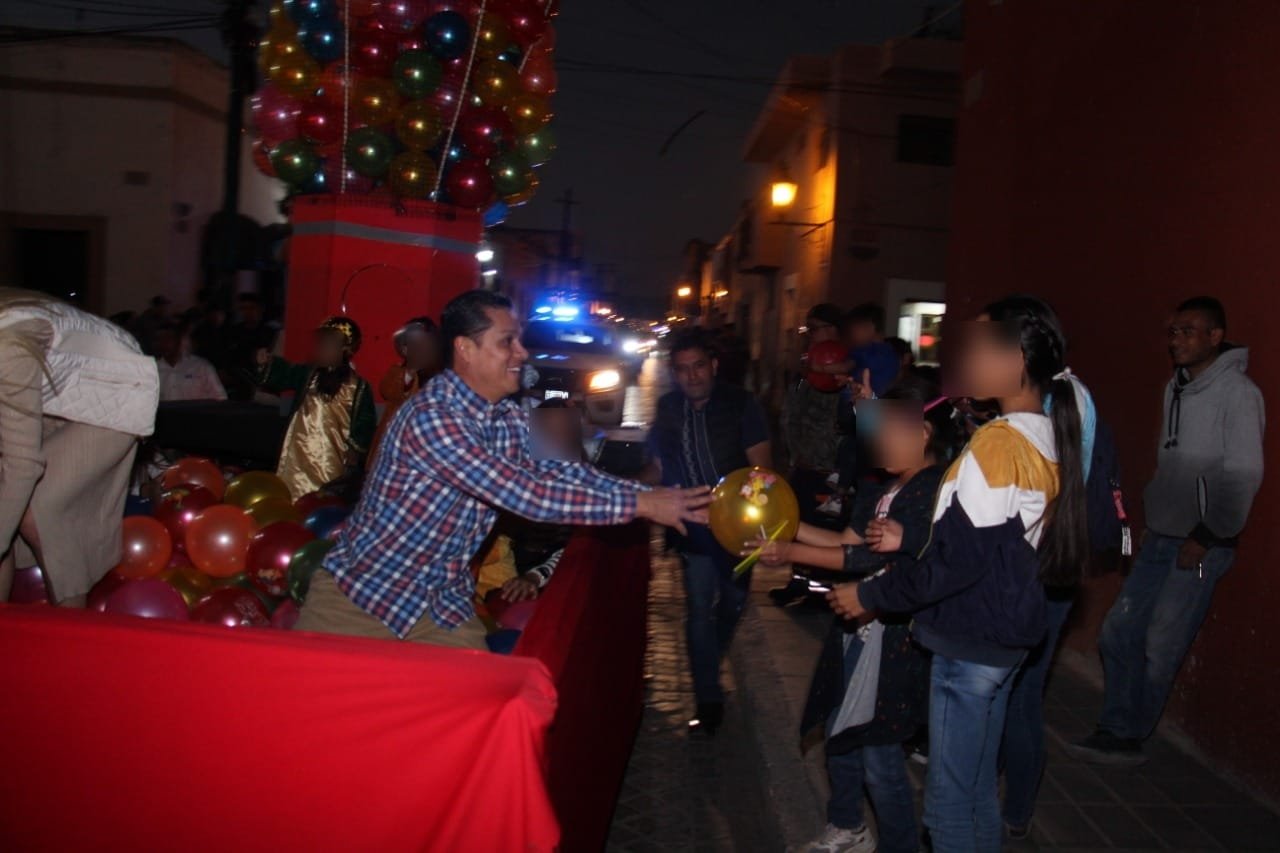 Salvatierra, Gto.- Una noche mágica llena de alegrias e ilusiones vivieron los salvaterrenses en especial los niños al acudir al tradicional desfile de Reyes Magos llevado a cabo por las principales calles de la ciudad.