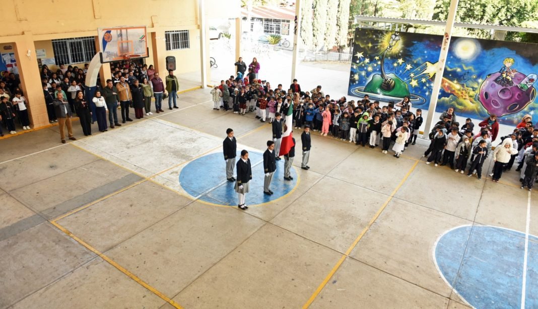 El acto cívico fue realizado con respeto y solemnidad por las alumnas de la escuela primaria, quienes participaron en el izamiento del Lábaro Patrio, el toque de bandera y la entonación del Himno Nacional Mexicano, reafirmando los valores cívicos y el amor por México desde la infancia.