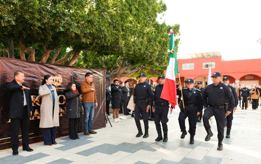 Villagrán, Gto.- Se llevaron a cabo los primeros Honores a la Bandera del año 2026 en el Jardín Municipal, frente a la Presidencia Municipal, con la presencia de la alcaldesa Cinthia Teniente Mendoza, el senador Emmanuel Reyes Carmona, el síndico Pedro Pérez Camacho, la regidora Carolina Acosta y el regidor José Luis Medina Guapo.