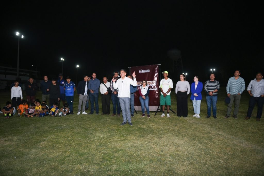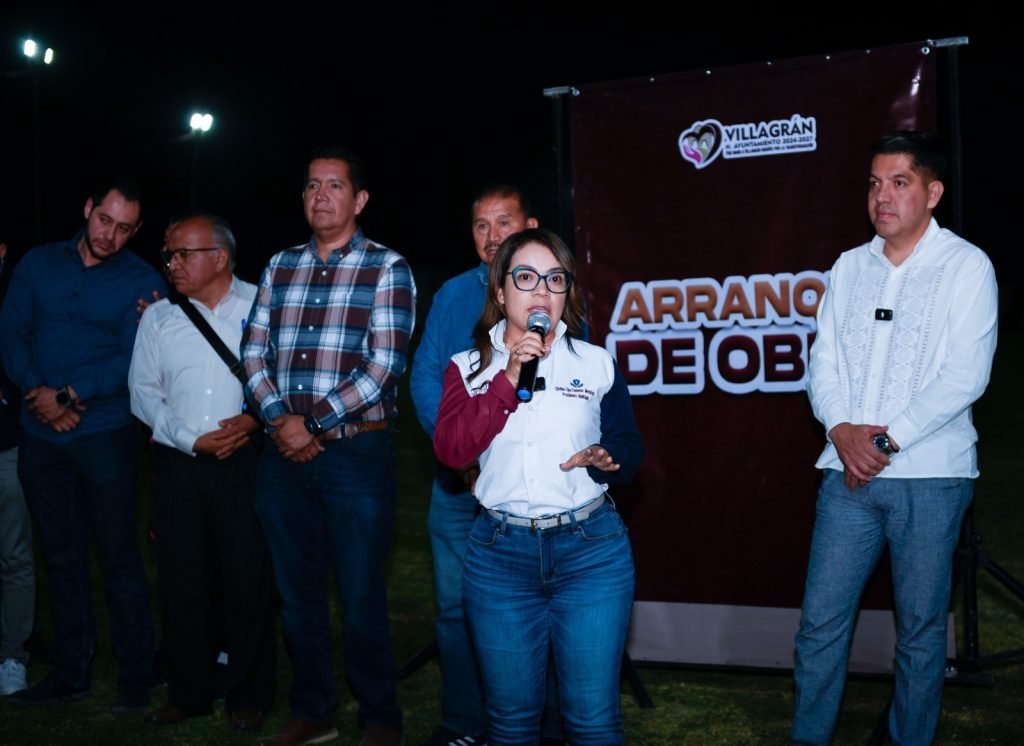 Villagrán, Gto.- El municipio de Villagrán continúa avanzando en el mejoramiento de sus espacios públicos con el propósito de ofrecer instalaciones dignas y seguras a las y los villagranenses. La noche del jueves, la presidenta municipal Cinthia Teniente Mendoza, en compañía del senador Emmanuel Reyes Carmona, el regidor José Luis Medina, el director de Obras Públicas José Raúl Jiménez, así como directoras y directores de la administración, dio el banderazo de arranque a la obra de reconstrucción de la barda perimetral de la Deportiva Oriente.