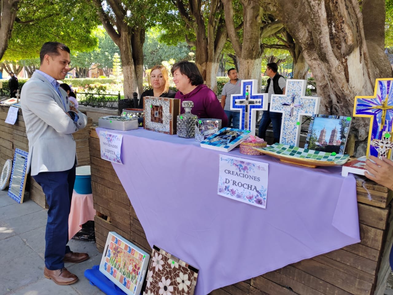En el jardín principal se llevó a cabo una exposición artesanal de mujeres que han acudido a los cursos de capacitación realizados por el Instituto de la Mujer Salvaterrense ofertando sus productos de crochet, vitromosaico, alimentos, pulseras entre otros artículos, además se contó con stands de sector salud quienes dieron información sobre el cuidado e higiene personal.