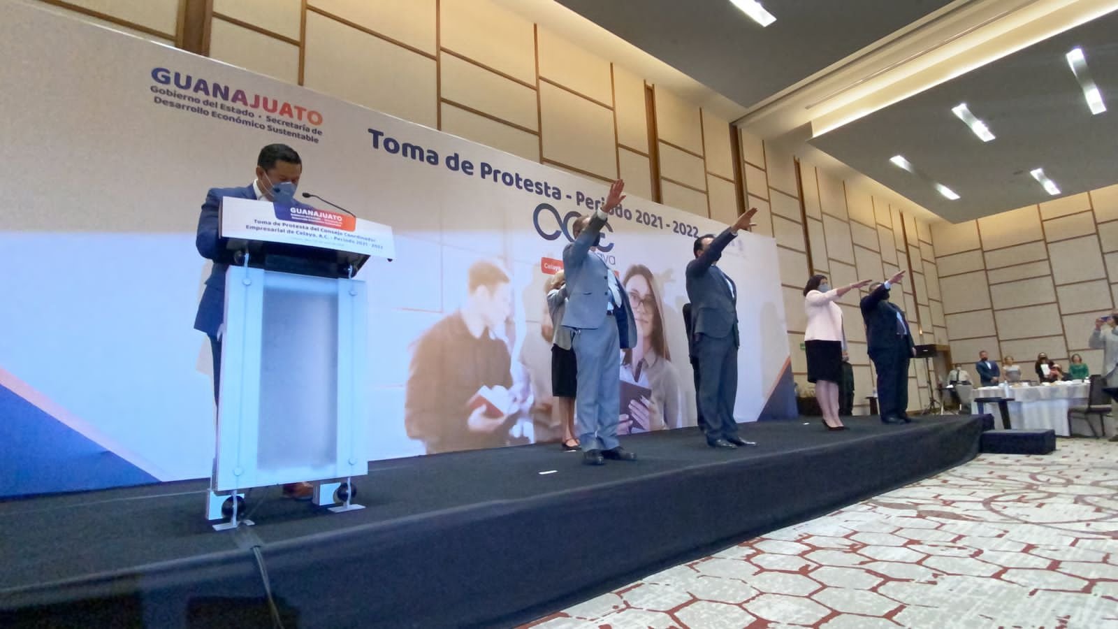 Celaya Gto.- Con la presencia del Gobernador del Estado de Guanajuato, Diego Sinhue Rodríguez Vallejo, se llevó a cabo la toma de protesta del Consejo Coordinador Empresarial de Celaya del periodo 2021-2022 por lo que  Juan Yudiko Herrasti es el presidente.