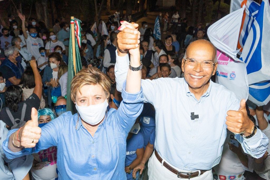Celaya Gto.- En lo que fue un mitin de agradecimiento, en el que el candidato del PAN a la Presidencia Municipal, Javier Mendoza Márquez, reconoció el trabajo y el apoyo de los ciudadanos que lo acompañaron durante la campaña, la Alameda de esta ciudad fue el marco de la celebración. Poco después de las 11 de la noche, arribó al lugar Mendoza Márquez acompañado de su esposa Rosita Suárez, en donde lo esperaba ya el ejército ciudadano que apoyó y trabajó para lograr los resultados en la elección, que aunque preliminares, marcan ya una tendencia irreversible. Javier Mendoza, agradeció y abrazó, se fotografió, con cada uno de los presentes, abriéndose paso entre la multitud que celebraba entre porras y vivas. Acompañado por las candidatas a la diputación federal y a la diputación local, Saraí Núñez y Lucy Hernández, Mendoza Márquez desde el templete agradeció y mencionó a las mujeres, a los hombres, a los jóvenes, a los campesinos, a las amas de casa, a los trabajadores, los comerciantes, los empresarios, los estudiantes, a todos los ciudadanos que lo respaldaron en su campaña hasta lograr el resultado deseado. Sin embargo, también mencionó que esperará a que la autoridad electoral de a conocer los datos definitivos a partir del miércoles. El candidato de Acción Nacional dijo que el mejor testimonio de agradecimiento para Celaya será cumplir a cabalidad los compromisos contraídos con los ciudadanos durante la campaña, desde un gobierno incluyente, en el que el centro de las políticas públicas será el ser humano. La Alameda de Celaya fue el escenario de una celebración que sin ser planeada, tuvo música de banda, baile de los concurrentes, pero sobre todo mucha alegría por el resultado obtenido.