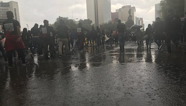 En la marcha también participan estudiantes de la Escuela Normal Raúl Isidro Burgos y alumnos de la Universidad Nacional Autónoma de México (UNAM) y del Instituto Politécnico Nacional (IPN) y otras instituciones.