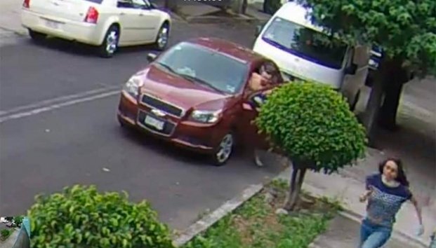 En redes sociales se difundieron las imágenes de un sujeto que se encuentra a bordo de un vehículo Chevrolet color vino, quién se percata de que una joven va pasando y la persigue completamente desnudo.