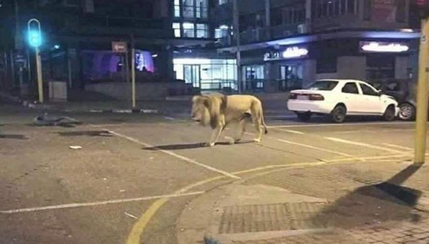 “Ya son noticias casi antiguas, pero si aún no lo vieron, aquí está el león que deambulaba por el CBD de Johannesburgo en Braamies anoche”.