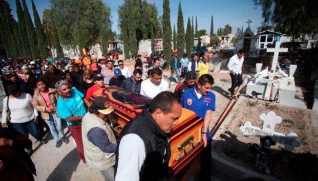 Tlahuelilpan, Hgo.- Este lunes fue día de luto y misas de cuerpo presente en la iglesia de San Francisco de Asís, procesiones al Panteón Municipal, donde se depositaron los cuerpos de ocho de los fallecidos por la explosión del ducto de Pemex ocurrida el viernes pasado en este municipio, que como nunca lloró a sus muertos.