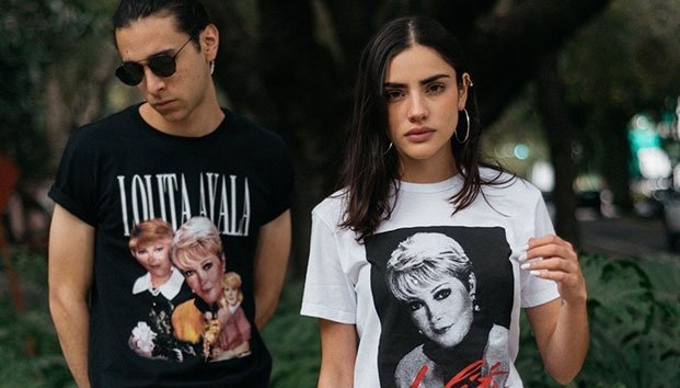 Al frente de cada playera está la figura de Lolita Ayala cuando estaba en su noticiero y la rosa blanca que nunca faltaba en su escritorio. Los precios van entre los 499 y 549 pesos.