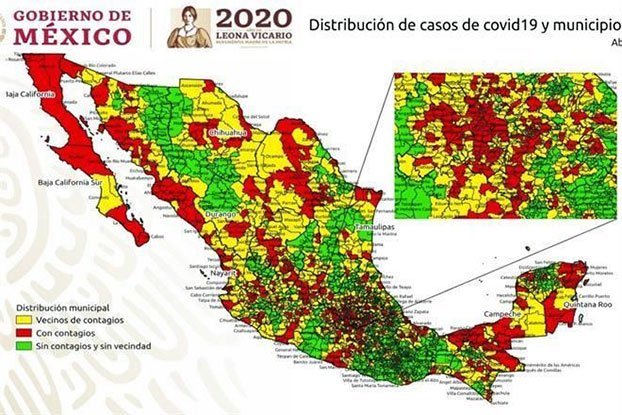 Dichos municipios están rodeados por mil 21 donde también se presentan contagios, esto representa que casi un 60 por ciento de las localidades del País presenta problemas de contagio, mientras que sólo un 40 por ciento (979) están fuera de riesgo, siempre y cuando sigan las recomendaciones hasta el 17 de mayo.