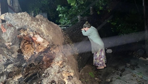 "Ví a éste inmenso árbol del que me enamoré, le dije a mi esposo: "aquí quiero nuestro hogar donde nacerán y crecerán nuestras hijas" y así fué. Y hoy, esta noche durante esta tormenta , sólo escuche como caía mi árbol y como tronaba al caer, cómo si llorara el fin de sus días…, no lo podía creer! , era un árbol tan grande y centenario que sus raíces despues de tanta lluvia y con de tantos años de vida no pudieron retenerlo y sostenerlo más a la tierra", relató.