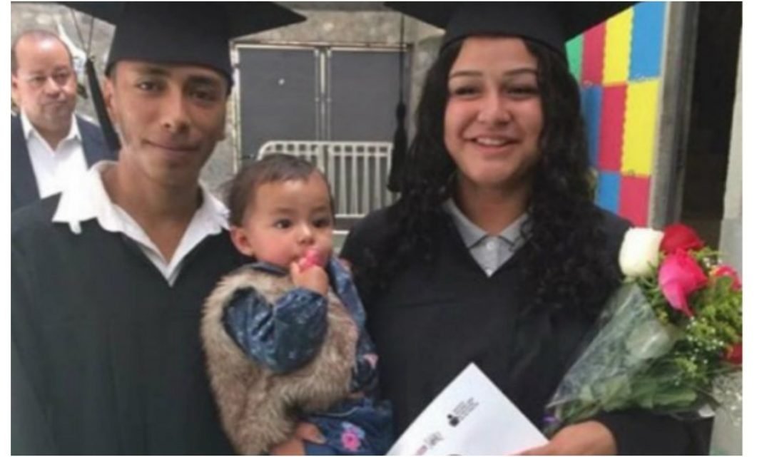 Ciudad de México. (Erizos).- Perla y Axel, de 16 y 19 años, se acaban de graduar de la secundaria, junto con su bebé en brazos.