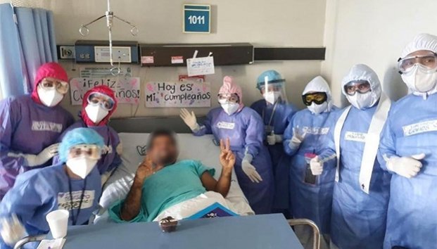 El “festejo” tuvo lugar el 24 de julio, cuando personal de enfermería del hospital leyó la fecha de nacimiento del paciente en su hoja médica, lo que les motivó a brindarle un mensaje de aliento.