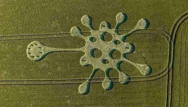 Ciudad de México.- Continúan ocurriendo fenómenos inexplicables alrededor del mundo, en esta ocasión ha llamado la atención la aparición de una figura con forma de coronavirus (COVID-19) de aproximadamente 61 metros de ancho en un campo de cultivo en la localidad de Wiltshire, Inglaterra.