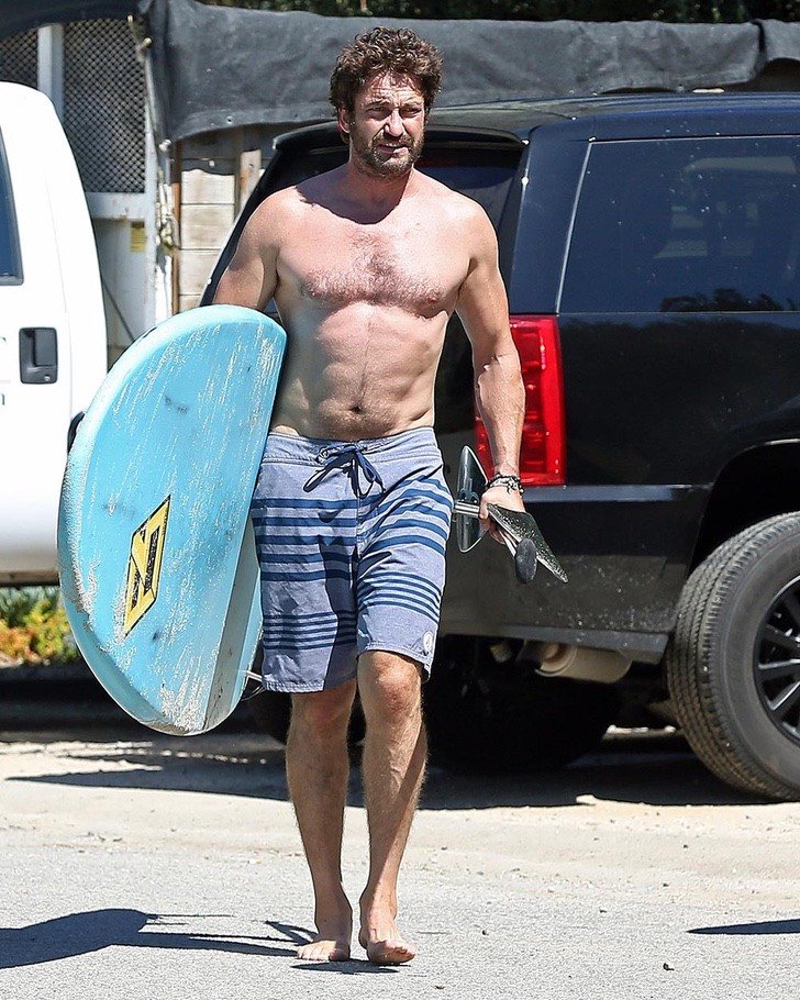 6. Gerard Butler presume su abdomen en la playa