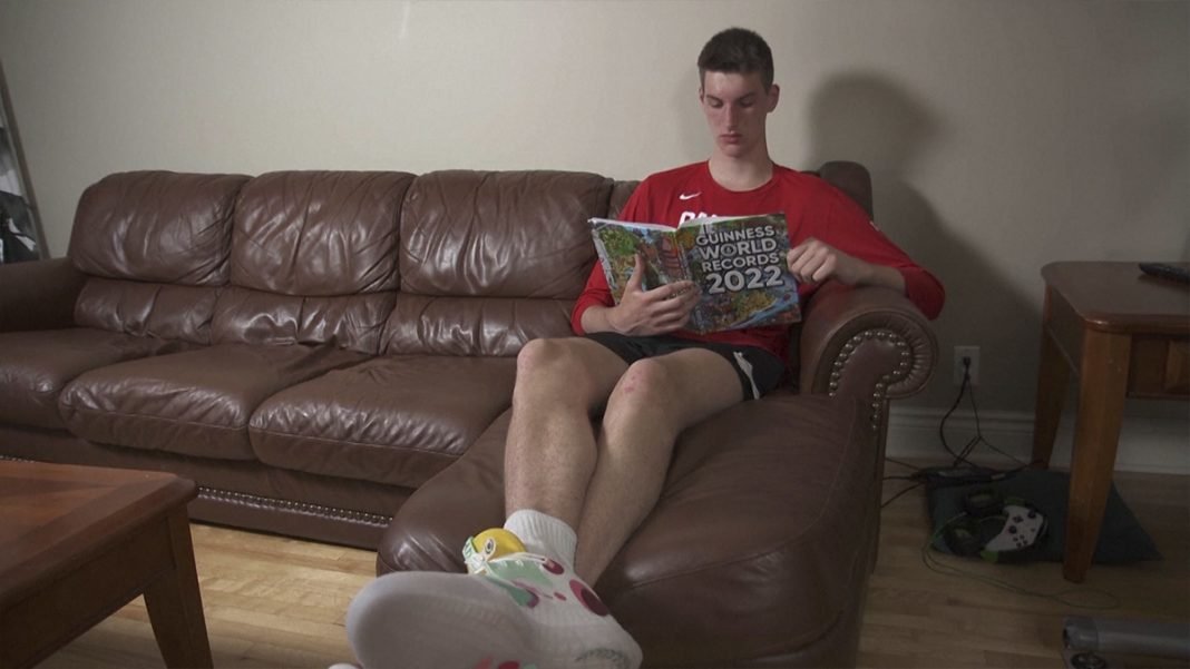 Oliver Rioux, de 15 años, rompió el récord al ser el adolescente más alto del mundo con una longitud de dos metros y 26.9 centímetros.