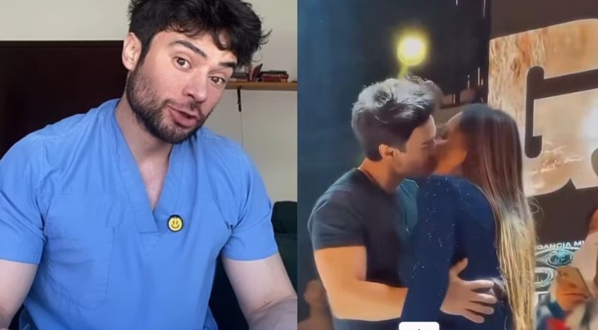 El médico influencer besó a la integrante de Las Perdidas en un evento público. Foto: (Captura de pantalla)