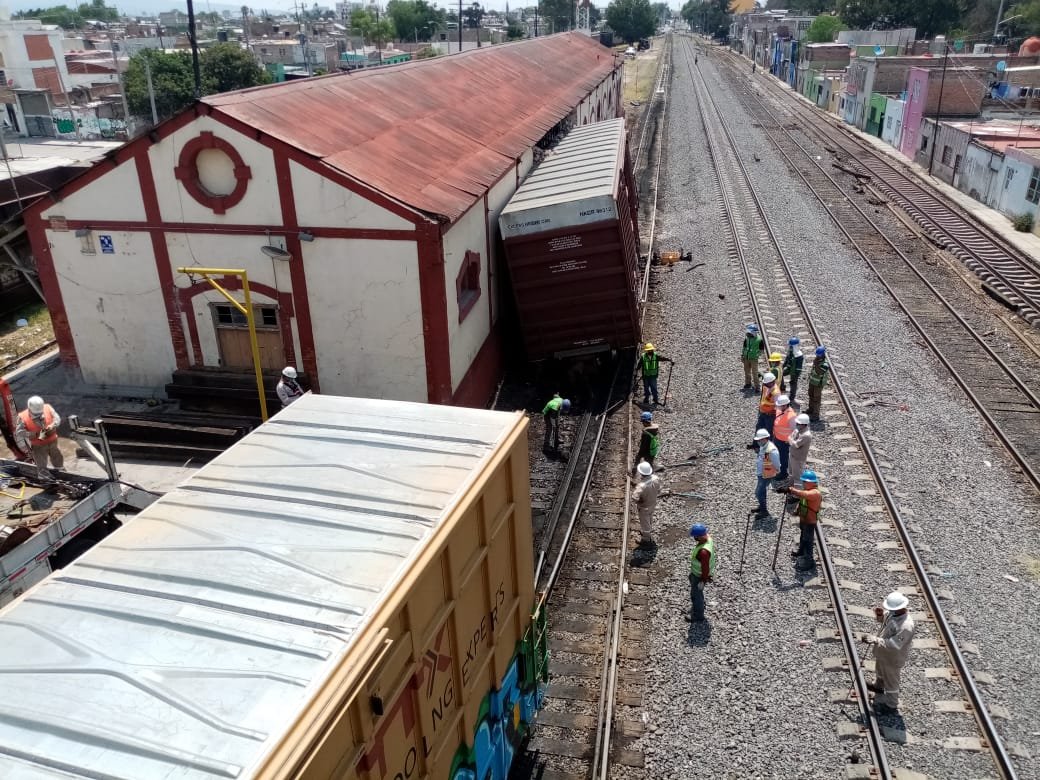 Celaya,Gto.- La tarde del martes varios vagones de tren se descarrilaron en la antigua estación ferroviaria, lo que ocasionó grandes daños a la estructura de la estación.