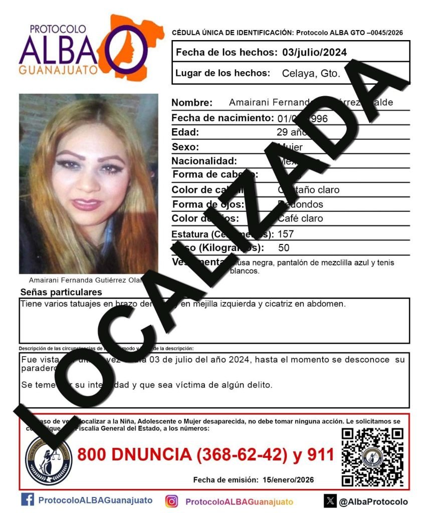 De acuerdo con las fichas difundidas por el Protocolo Alba, este año en la entidad han localizado sin vida a 12 mujeres reportadas como desaparecidas, 6 de ellas eran originarias de Celaya.