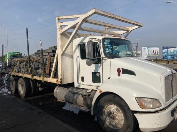 Mientras tanto fue asegurado el camión tipo rabón marca Kenworth, color blanco, el cual iba cargado con un aproximado de 13 toneladas de material para construcción.
