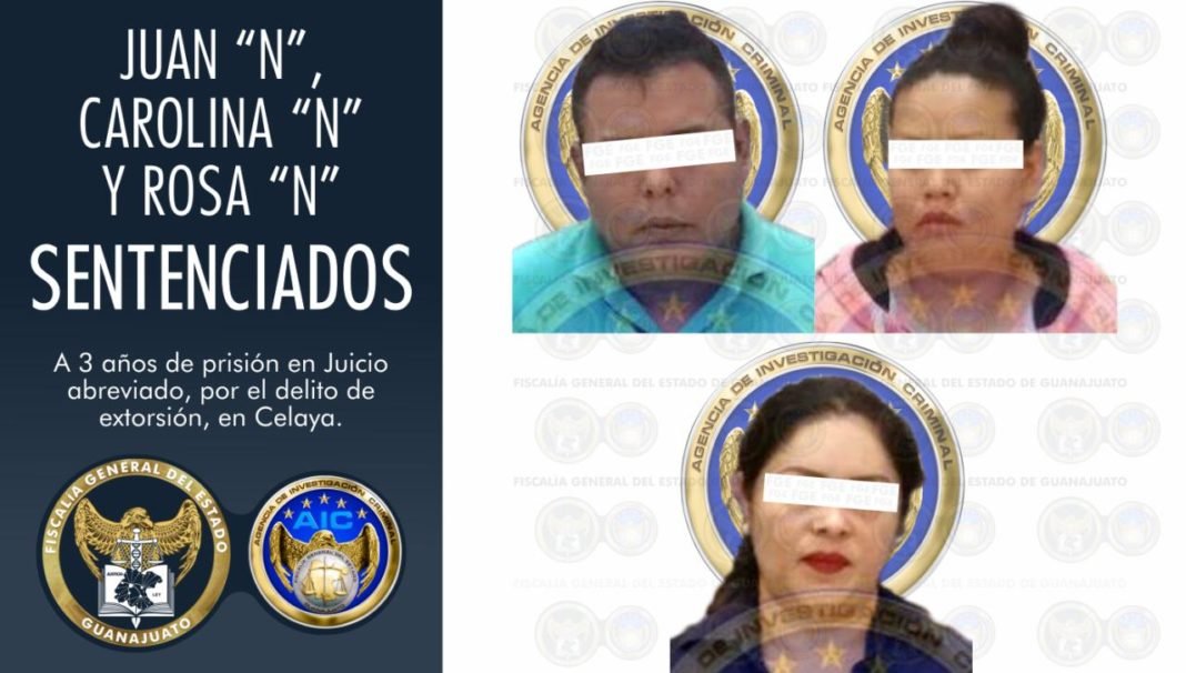 Celaya,Gto.- Dos mujeres y un hombre fueron acusados por el delito de Extorsión en agravio de la propietaria de una Abarrotes, por ello fueron llevados a Juicio por la Fiscalía General del Estado y sentenciados a 3 años de prisión.